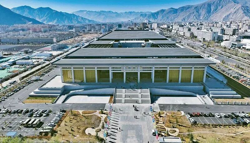 ▲2023年12月15日,西藏大剧院开台演出活动举行,西藏文化新地标西藏大剧院正式启用。图为空中俯瞰西藏大剧院(无人机照片)。新华社记者 晋美多吉/摄