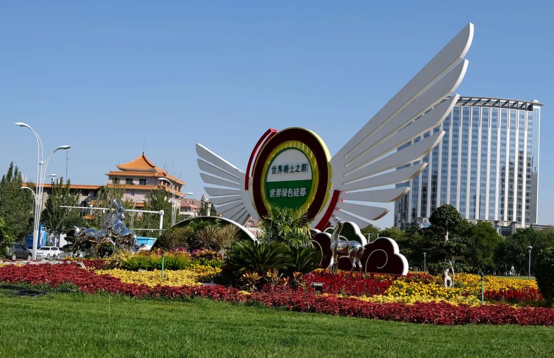 ▲这是2023年9月12日拍摄的内蒙古包头市银河广场“世界稀土之都”“世界绿色硅都”标志。图源:经济参考报