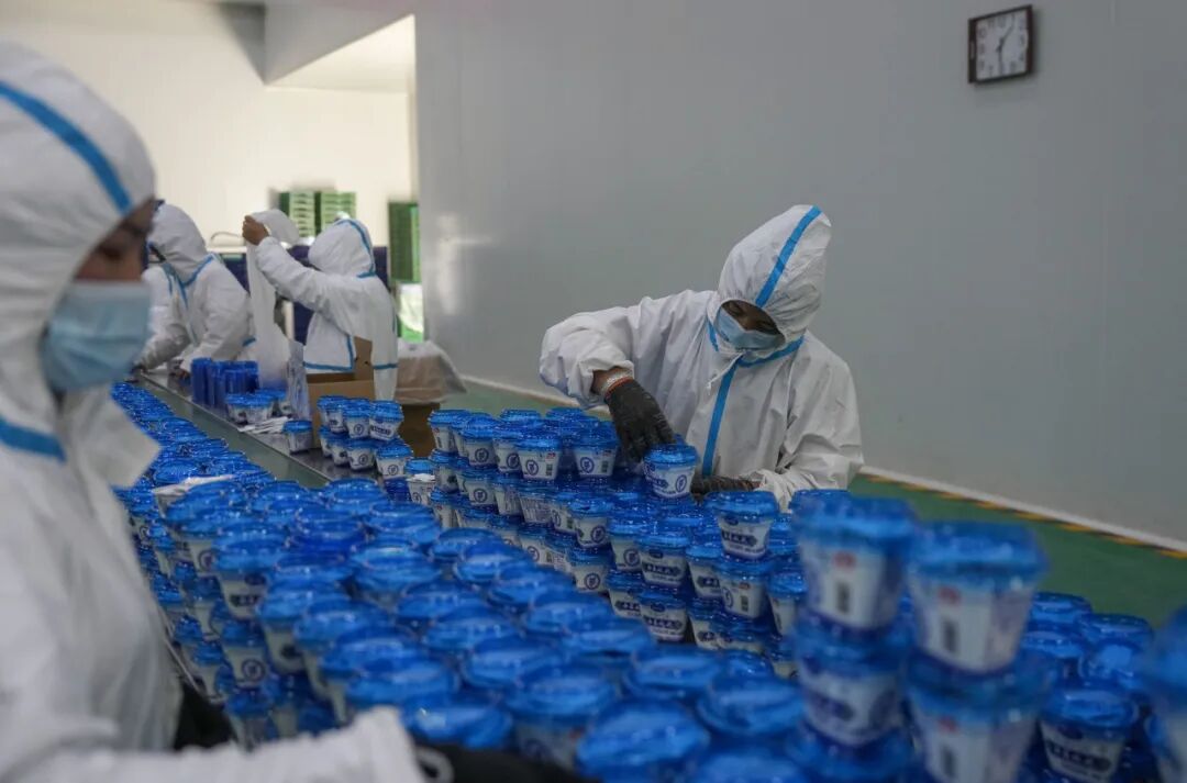 ▲西藏乳制品龙头企业藏地吉龙农业开发有限公司员工在检查乳制品包装情况(3月5日摄)。新华社记者 晋美多吉 摄